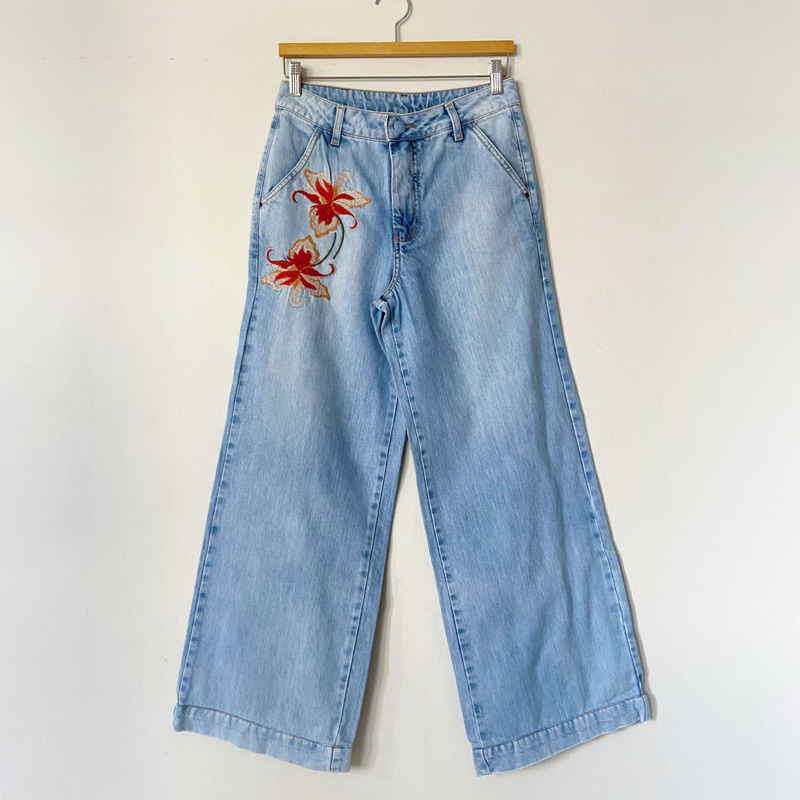 Product id: Calça jeans com sales aplicação de flores